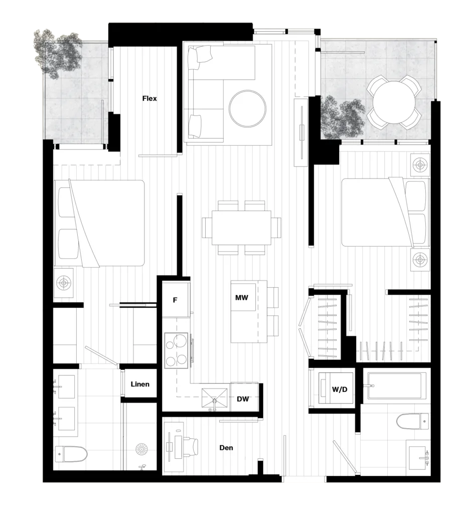 2 Bed + Den + Flex, 2 Bath